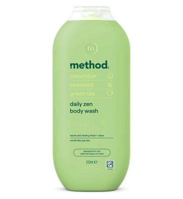 Take a moment to breathe and refresh with Method Daily Zen Body Wash. Infused with cucumber, seaweed, and green tea, this cooling formula gently cleanses while leaving skin soft, hydrated, and revitalized.