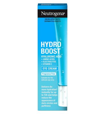 Neutrogena Hydro Boost Eye Cream delivers up to 72 hours of hydration to refresh and revive tired-looking eyes. Its powerful formula strengthens the delicate eye skin barrier while leaving the eye contour soft, smooth, and dewy.