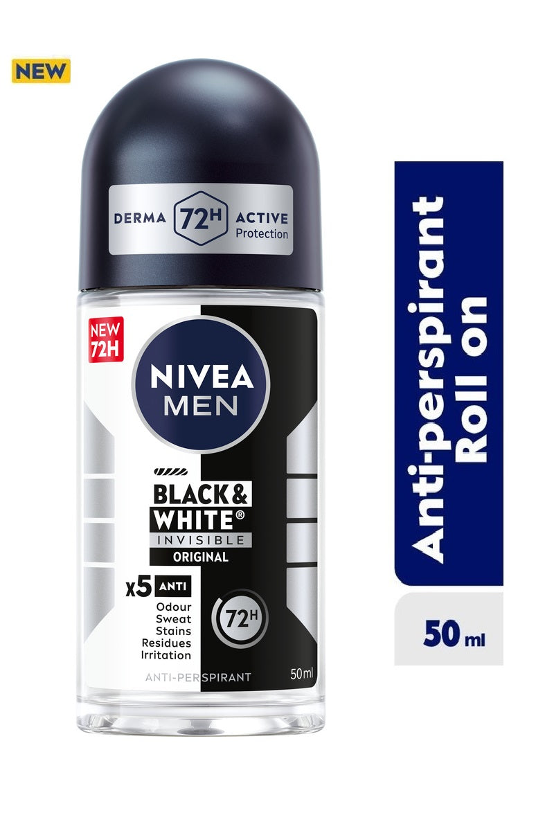 NIVEA Black & White Invisible Clear Roll-On is specially formulated to protect both your skin and clothes. It prevents white marks on black fabrics and reduces yellow stains on white clothes while delivering up to 72 hours of reliable anti-perspirant protection.
