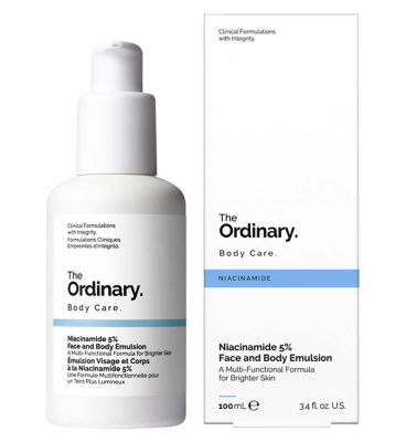 The Ordinary Niacinamide 5% Face and Body Emulsion is a lightweight, multi-functional formula designed to target uneven skin tone and dark spots. Infused with 5% niacinamide, this emulsion helps to fade dark spots across the face, neck, chest, and arms, promoting a more uniform and even skin tone for all skin types.