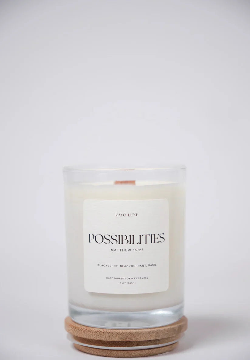 Discover Possibilities by Rayo Luxe—a candle that inspires curiosity and creativity. This blend of Blackberry, Black Currant, and Basil invites you to explore new horizons with every burn.