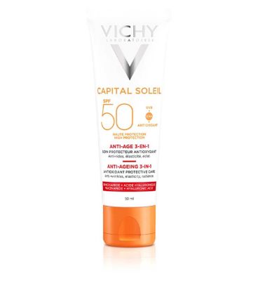 The Vichy Capital Soleil Anti-Ageing 3-in-1 SPF50 Cream is specifically formulated to protect mature skin against the visible effects of sun damage. With broad-spectrum UVA/UVB defense, it helps prevent new signs of ageing while actively reducing the appearance of fine lines and improving skin firmness.