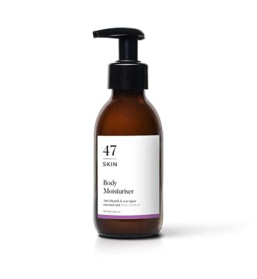 47 Skin Body Moisturiser is the ultimate solution for body blemishes, including body spots, KP, eczema, and redness. Formulated with the breakthrough ingredient Silver Chitoderm™, it targets the root cause of body blemishes by killing bacteria while promoting skin cell renewal. This luxurious moisturizer is enriched with Vitamin E and Ceramides, which lock in moisture and help your skin stay hydrated and firm. Its lightweight, non-comedogenic formula resurfaces the skin, leaving it soft, smooth, and blemish-free.