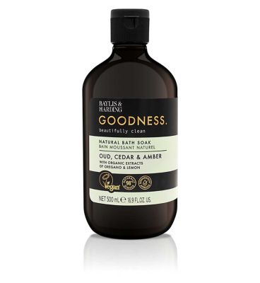Transform your bath into a moment of indulgence with Baylis & Harding Goodness Oud, Cedar & Amber Bath Soak. Enriched with natural extracts and essential oils, this luxurious soak soothes the senses while leaving skin refreshed and cared for.
