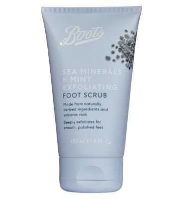 Pamper your hardworking feet with the Boots Sea Minerals & Mint Exfoliating Foot Scrub, made with 97.8% naturally derived ingredients. This refreshing formula combines volcanic rock exfoliants and sea minerals to buff away rough, dry skin and leave feet smooth and polished.