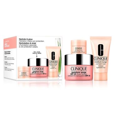 Stay hydrated and protected with the Clinique Hydration & Go Gift Set. Worth over £67, this curated skincare trio delivers all-day hydration, overnight nourishment, and bright eyes. Featuring a full-size Moisture Surge™ SPF 25 Sheer Hydrator, this set ensures your skin is glowing, refreshed, and shielded from UV rays.