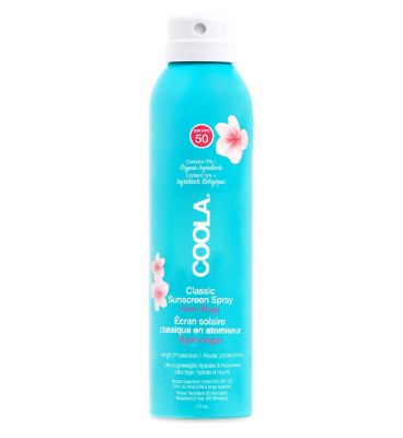 Coola Body Spray SPF50 delivers broad-spectrum UVA/UVB defense in a lightweight, continuous non-aerosol mist. Perfect for outdoor activities, its water-resistant formula protects against sun damage while offering anti-aging benefits.