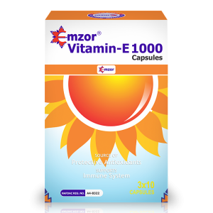 Emzor Vitamin E 1000IU is a high-strength supplement that helps protect the body from oxidative stress and free radical damage. As a potent antioxidant, it supports healthy skin, muscles, and nerves while promoting overall cellular health and vitality.