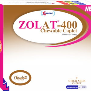 Emzor Zolat 400mg Chewable Caplet is a high-strength anthelmintic designed to effectively treat single or mixed worm infections. It works by eliminating intestinal parasites, helping to restore digestive comfort and promote better health.