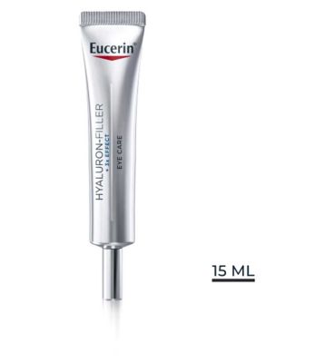 Eucerin Hyaluron-Filler Eye Cream is an advanced formula that targets fine lines and wrinkles while protecting the delicate eye area from UV damage. Lightweight and ophthalmologically tested, it is suitable for all skin types and contact lens wearers.