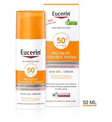 Eucerin Sun Pigment Control Tinted Facial Sun Fluid SPF50+ Light is an everyday facial sunscreen designed to protect your skin from sun-induced pigmentation while reducing dark spots over time. Its tinted formula unifies your complexion and covers imperfections, giving you a more even skin tone.