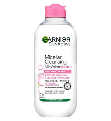 Garnier Micellar Milky Cleansing Water is specially designed for dry and sensitive skin. This hydrating formula combines micellar water technology with a creamy, milky texture to remove makeup, dirt, oil, SPF, and impurities without stripping moisture.
