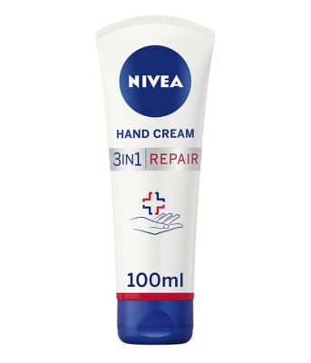NIVEA Hand Cream 3 in 1 Repair 100ml is a vegan formula designed to instantly soothe, repair, and protect extremely dry and chapped hands. Enriched with Provitamin B5, it provides deep hydration while strengthening the skin’s protective barrier.