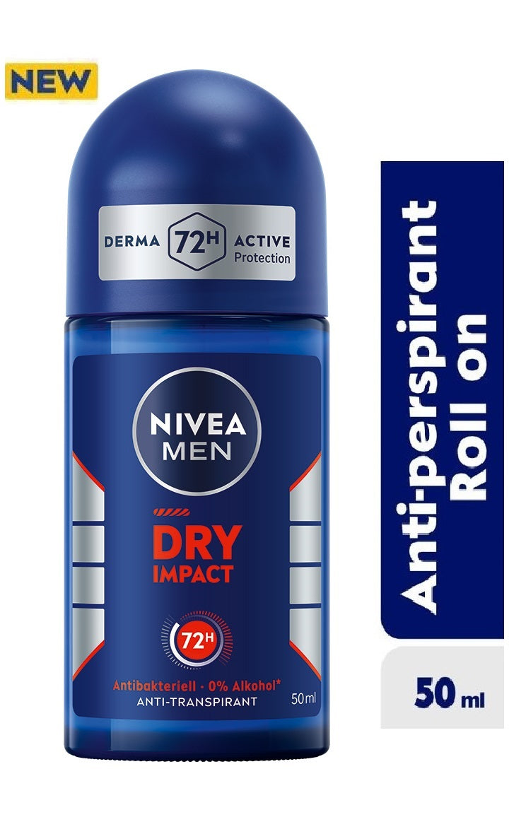 NIVEA MEN Dry Impact Roll-On delivers long-lasting antiperspirant protection with a dry and comfortable skin feel. Its dual protect formula with two antibacterial actives fights odor-causing bacteria while keeping your underarms fresh and dry for up to 72 hours.