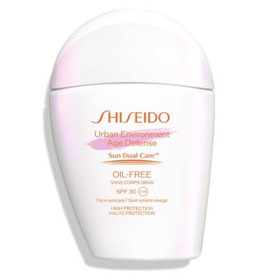 Shiseido Urban Environment Oil-Free Emulsion SPF30 combines advanced sun protection with age-defense skincare. Formulated with Sun Dual Care™ technology, it not only shields against UVA/UVB rays and pollution but also converts a portion of sunlight into beneficial light to support skin vitality.