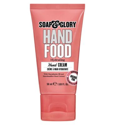 Keep your hands soft, smooth and beautifully scented wherever you go with the Soap & Glory Hand Food Hand Cream Mini. This travel-friendly 50ml size is packed with a conditioning cocktail of shea butter, macadamia oil, grape seed oil and almond oil to nourish and hydrate even the driest hands.