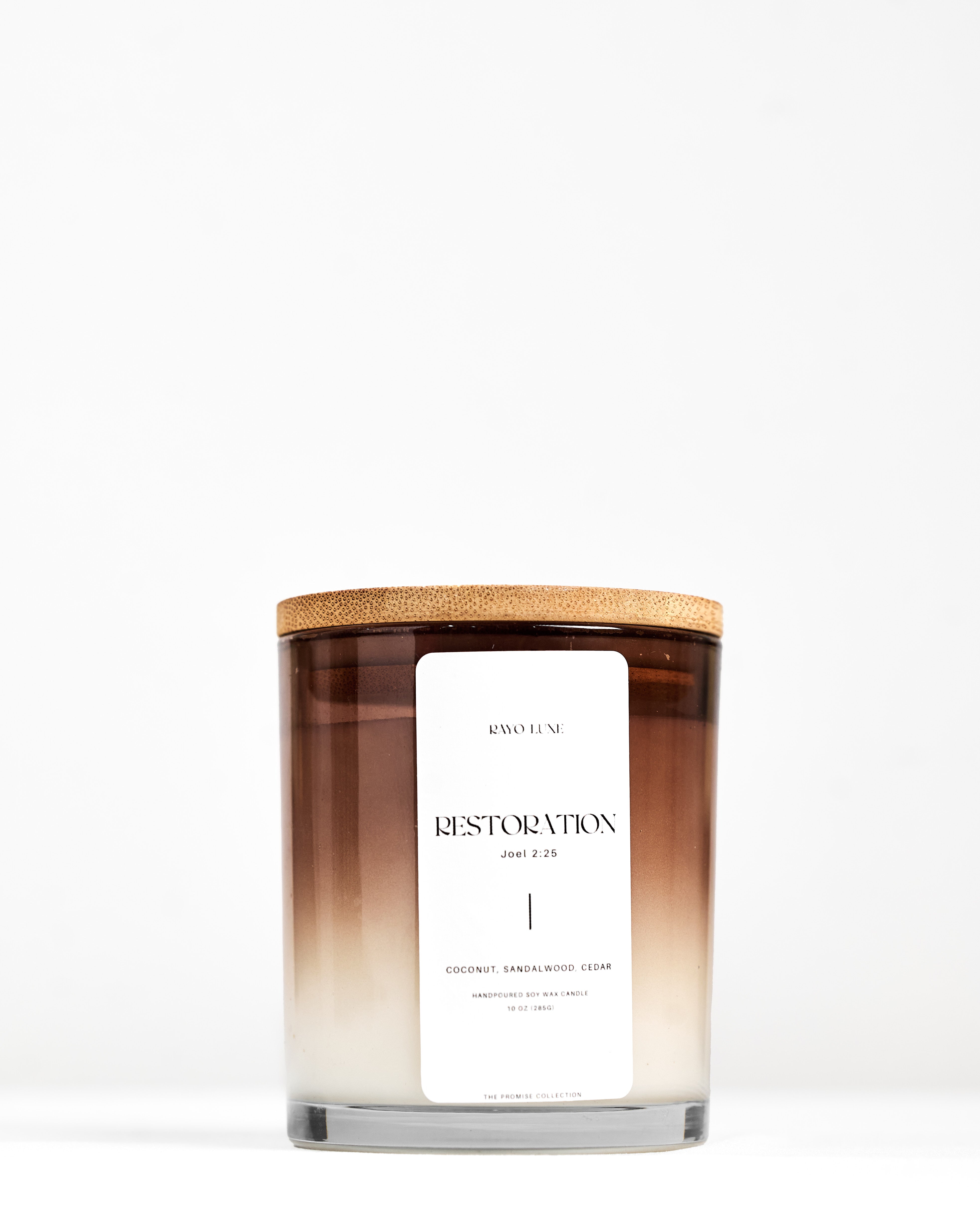 Part of our Promise Collection, the Restoration Candle is designed to bring peace and renewal to your space. Crafted with a soothing blend of Coconut, Sandalwood, and Cedar, this comforting fragrance opens with the creamy sweetness of coconut, grounded by warm, earthy sandalwood, and rich cedar—creating a scent that feels like a gentle embrace for the soul. Inspired by Joel 2:25, “I will restore to you the years that the locust hath eaten,” this candle serves as a reminder of hope, healing, and divine renewal. Light it to experience restorative calm and reflect on the promise of restored joy and peace. Perfect for personal moments of reflection or as a gift of encouragement