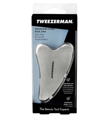 The Tweezerman Stainless Steel Gua Sha is a sleek, durable tool designed to elevate your skincare routine. Crafted from high-quality stainless steel, it delivers a cooling effect that helps soothe the skin while enhancing your natural glow.