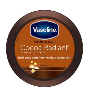 This rich body butter combines 100% natural cocoa butter with micro-droplets of Vaseline Jelly to deeply moisturise dry skin, lock in hydration, and restore its natural radiance.