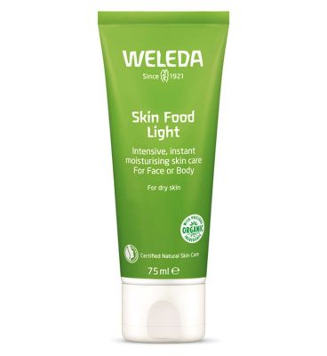 Weleda Skin Food Light is a silky lotion that provides instant comfort and moisture to dry skin. Enriched with organic sunflower oil and extracts of calendula, wild pansy, and chamomile, this award-winning formula absorbs quickly, leaving skin velvety soft, smooth, and nourished.
